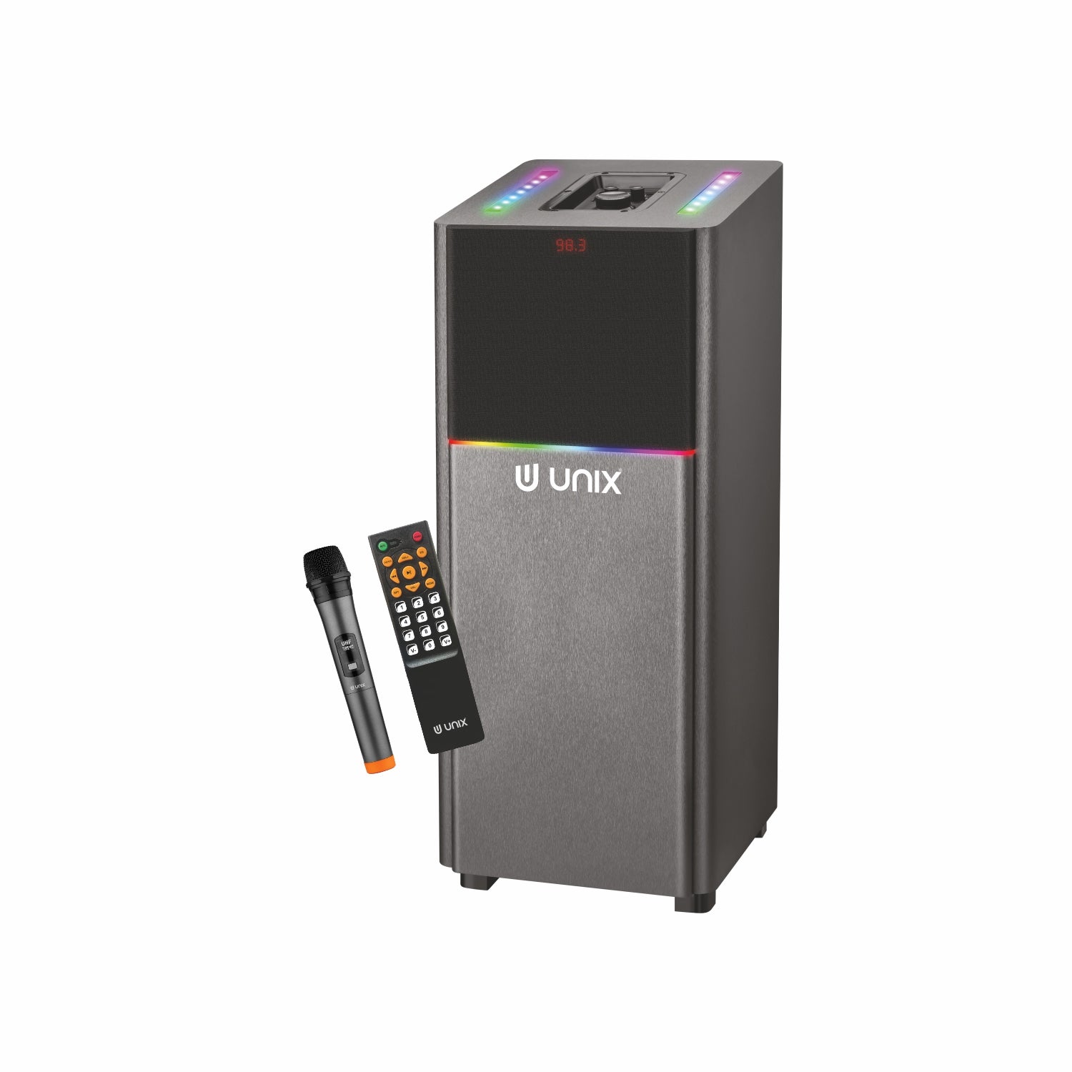Bring your parties to life with the Unix Meta 120W Super Bass Party Speaker, a floor-standing Bluetooth speaker built for massive sound and dynamic performance. With 120W output and an 8″ woofer, this Unix speaker delivers deep bass, rich stereo audio, and crystal-clear highs, making it perfect for home entertainment, outdoor gatherings, or any celebration. Its dynamic frequency response from 150Hz to 18KHz ensures every beat and melody comes alive with clarity.