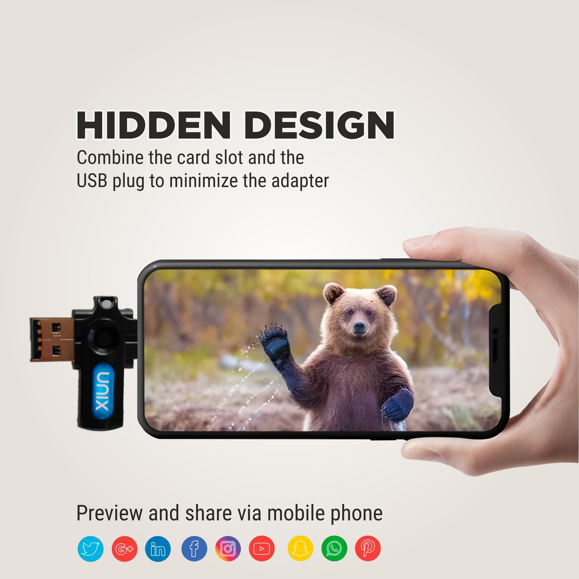 Experience the next level of portability and function with the UNIX OT10 Dual Side OTG + Card Reader. Designed for modern multitaskers, this compact accessory features dual USB-A and USB-C plugs, making it compatible with a wide range of smartphones, tablets, and laptops. The innovative hidden design merges the USB plug and card slot into one sleek body, saving space while enhancing style. Whether you're transferring files or accessing data on-the-go, the OT10 delivers seamless connectivity with plug-and-play ease.