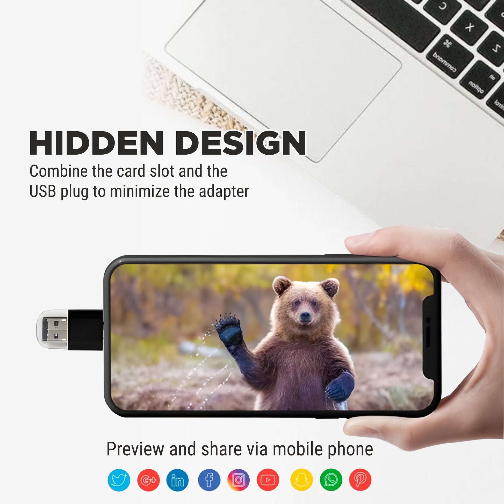 Hidden Design – Card slot and USB plug combined in one sleek unit