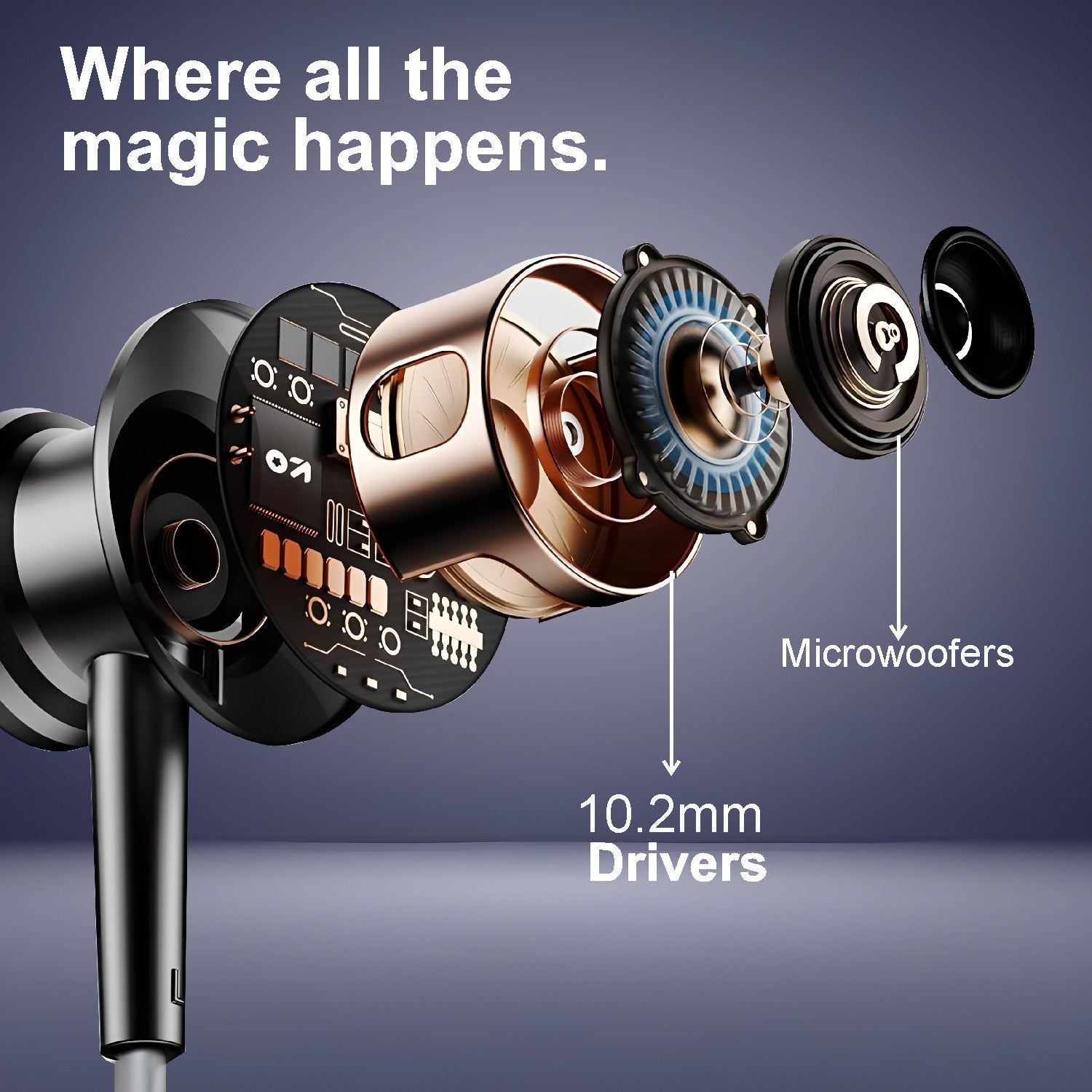 - 10mm dynamic drivers deliver powerful bass and clear sound