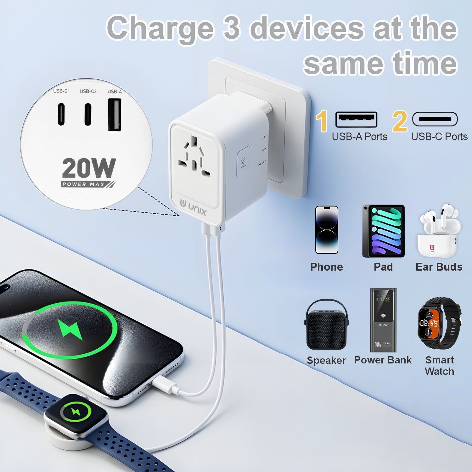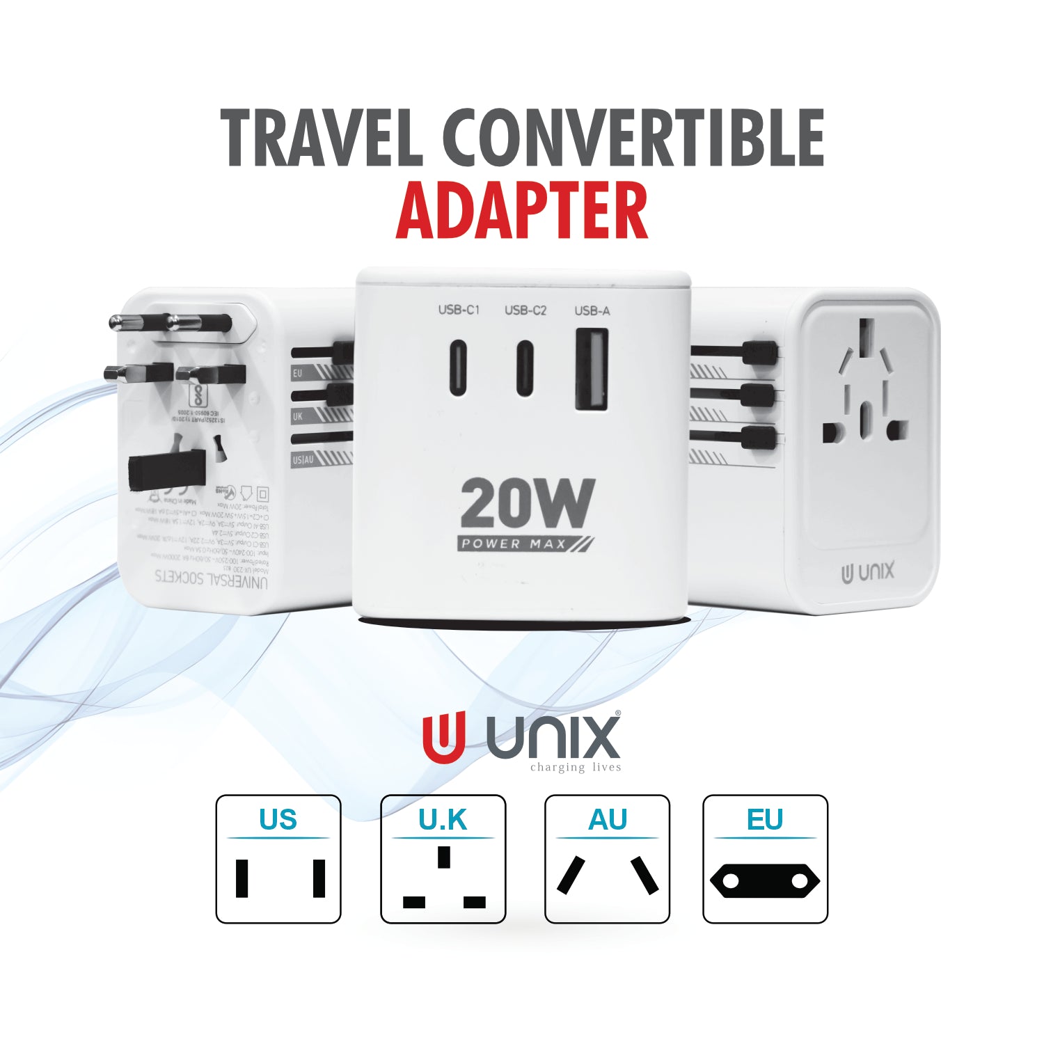 Stay powered wherever you go with the UNIX UX-TRAVELPRO Travel Convertible Adapter, your all-in-one global charging solution. Equipped with PD 20W and QC 3.0 super-fast charging, this compact adapter intelligently matches the required current for phones, tablets, laptops, and moreäóîensuring efficient and safe charging.