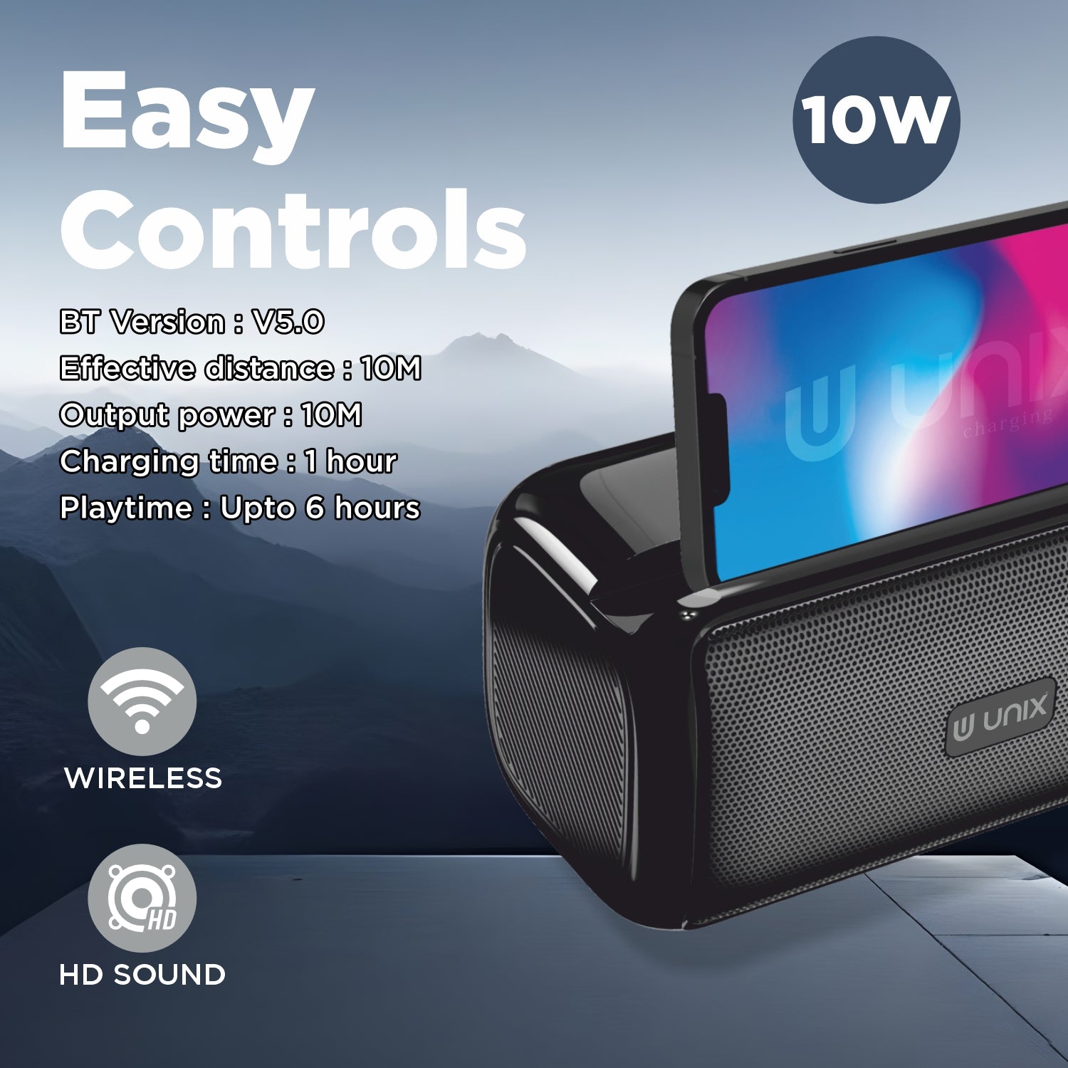 Elevate your music experience with the Unix WaveBox 10W Portable Wireless Speaker, a sleek and compact Bluetooth speaker designed for rich, immersive sound. With 10W output, this Unix speaker delivers deep bass and crisp highs, making it perfect for indoor listening or outdoor gatherings. Its wide frequency response ensures every note comes alive with clarity, while the SNR of 80dB+ guarantees distortion-free audio.